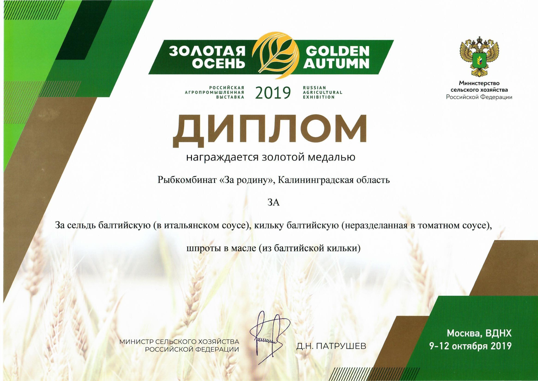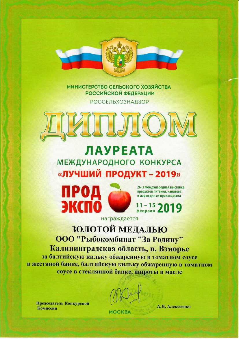 Группа компаний «За Родину» - рыбоперерабатывающий комплекс полного цикла, выпускающий широкий ассортимент высококачественной консервной продукции, которая представлена в 8 зарубежных странах и 53 регионах РФ. «За Родину» уверенно держит лидирующие позиции на рынках шпрот и кильки в томатном соусе. Уже более 70 лет предприятию удается сохранять традиции изготовления рыбной продукции, бережно передавая их от поколения к поколению. Собственный флот, расположение производства на берегу Балтийского моря и современные технологии переработки позволяют в короткие сроки, из наисвежайшего сырья, выпускать продукцию высокого качества, которое на протяжении многих лет подтверждается дипломами, медалями и благодарностями на международных выставках и конкурсах.