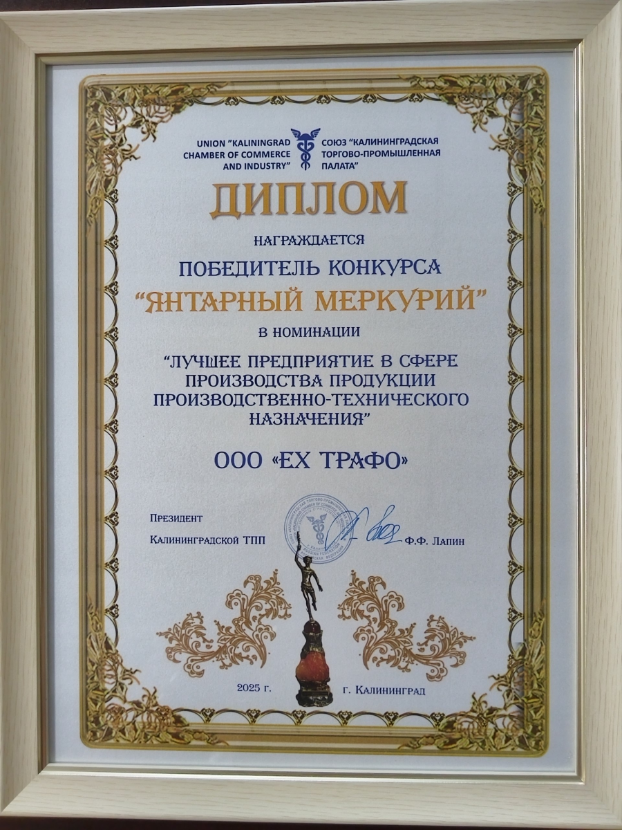 ООО «ЕХ ТРАФО» — российский производитель трансформаторного и реакторного оборудования. Наше предприятие находится в Калининграде и производит сухие силовые трансформаторы мощностью до 10000 кВА, напряжением до 35 кВ, по технологии RESIN GLASS FIBER, преобразовательные трансформаторы и реакторы. У нас полный цикл производства, включающий этапы: проектирование, производство оборудования, испытания, сервисное обслуживание и ремонт.