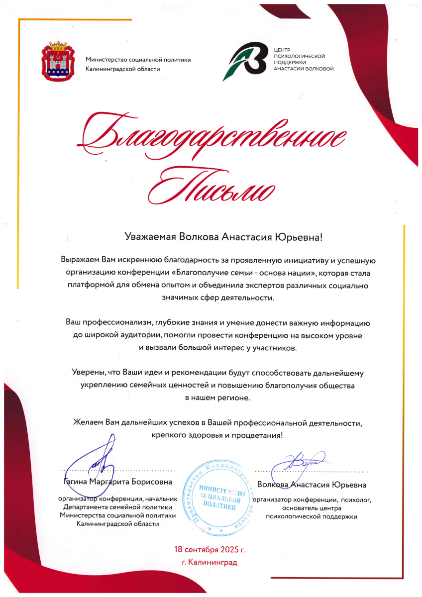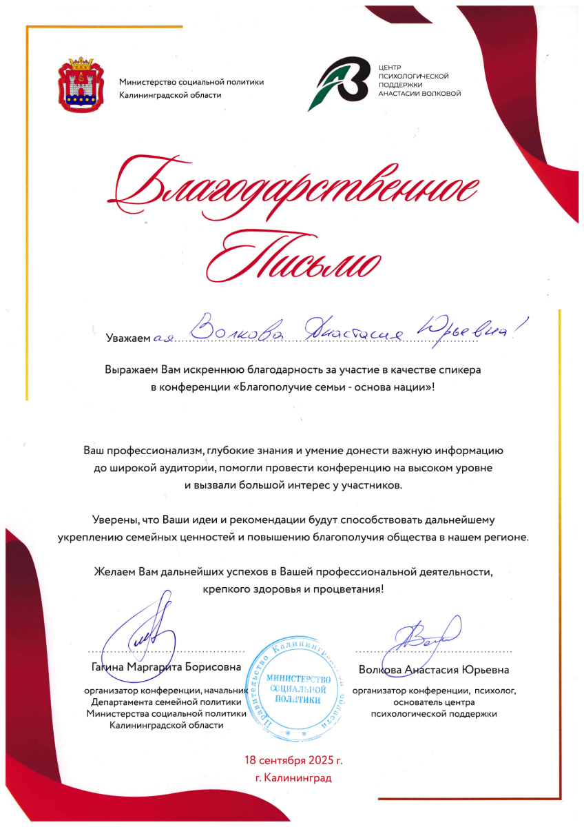 Центр психологической поддержки Анастасии Волковой предлагает индивидуальные и корпоративные программы, направленные на развитие психологической устойчивости, повышение качества жизни и эффективности взаимодействия в коллективе.
