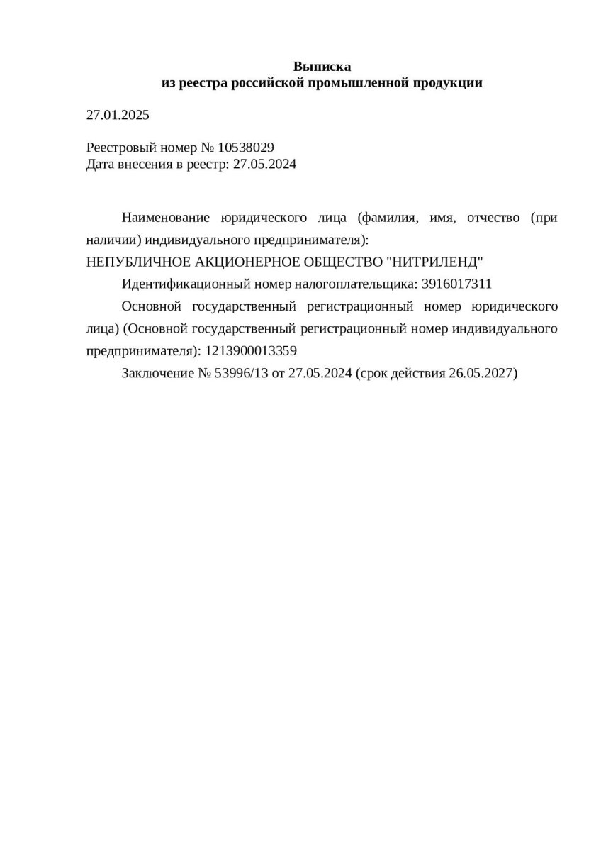 НАО "НИТРИЛЕНД" реализует специальный инвестиционный контракт ( СПИК 2.0) №87 от 10 апреля 2024г (срок действия СПИК до 2023).